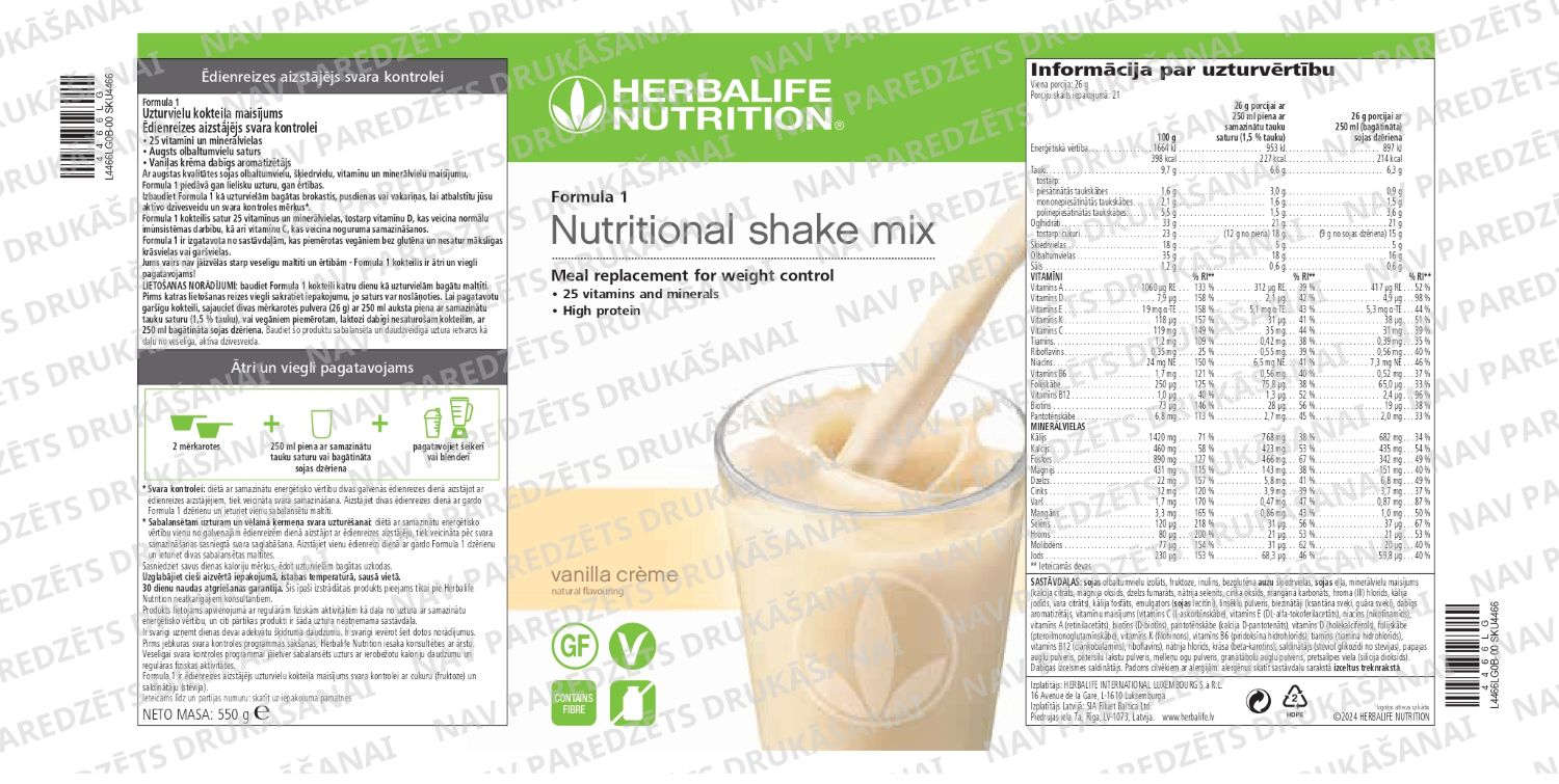 LIETOŠANAS NORĀDĪJUMI: Viegli sakratiet iepakojumu pirms katras lietošanas, jo tā saturs var noslāņoties. Sajauciet 2 ēdamkarotes (26 g) pulvera ar 250 ml piena ar samazinātu tauku saturu (1,5 % tauku).